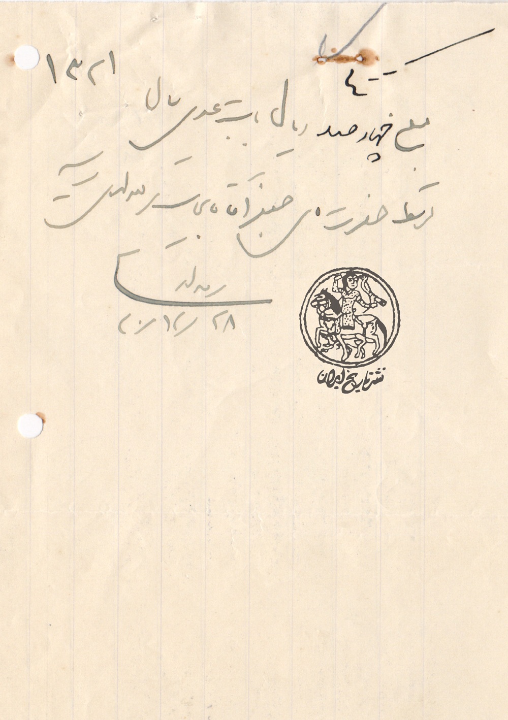 وصول حقوق5 آبان 1404وصول حقوق5 آبان 1404 0 عیدی عیدی تاریخ: ۲۸ اسفند ۱۳۲۰وصول مبلغ ۴۰۰ ریال توسط جعفر اتحادیه به شریعتمداری از بابت عیدی تیم مدیریت وب سایت مطالب مرتبط5 آبان 1404وصول حقوقاطلاعات بیشتر دیدگاه ها بسته شده است