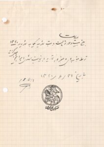 ۱۹) وصول حقوق ۳۱ شهریور ۱۳۲۰ مبلغ ۲۲ ریال